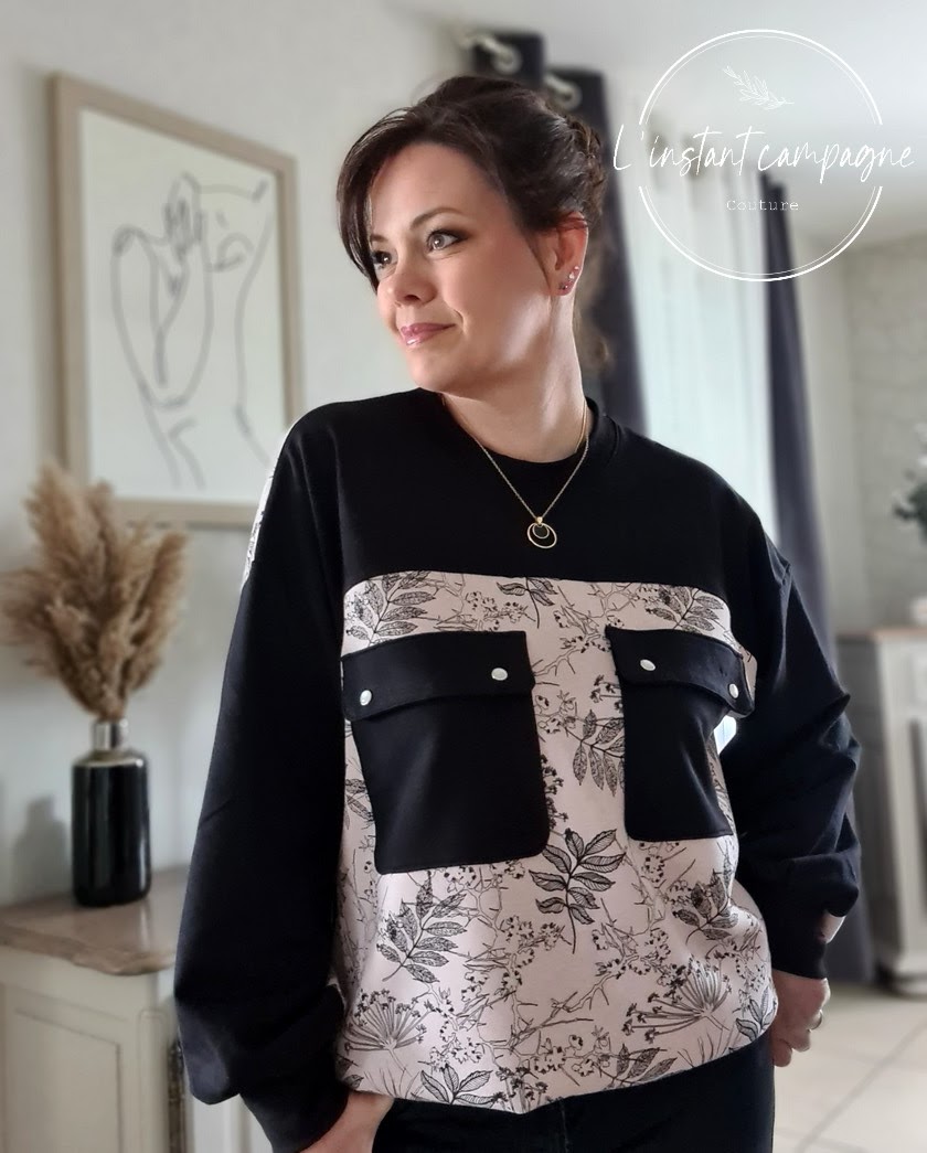 La coupe de ce sweat est loose. Selon le livret explicatif, j'étais entre une taille M et une taille L (pour mon 40 du commerce) j'ai donc coupé un grand M et au final c'est un peu large. Alors un conseil : si vous êtes entre deux tailles, choisissez la taille inférieure !